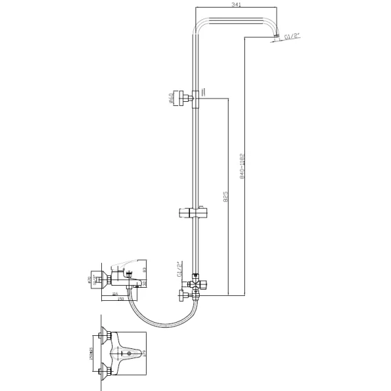 Аэратор, Металлическая розетка, Эксцентрики, Душевой шланг, Душевая лейка, Держатель для душевой лейки, Верхний душ, Смеситель, Кронштейн, Штанга душевая