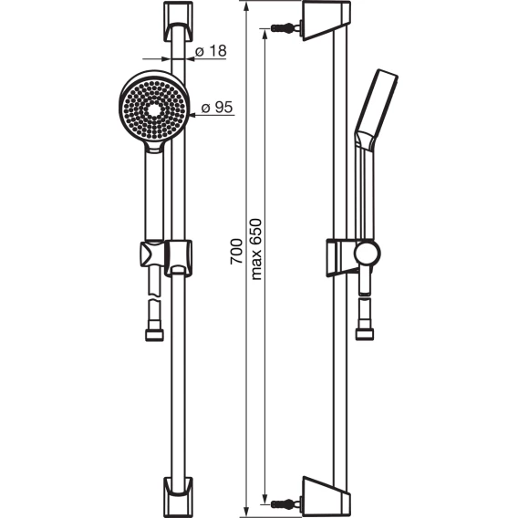 Душевой шланг, Душевая лейка, Держатель для душевой лейки, Штанга душевая