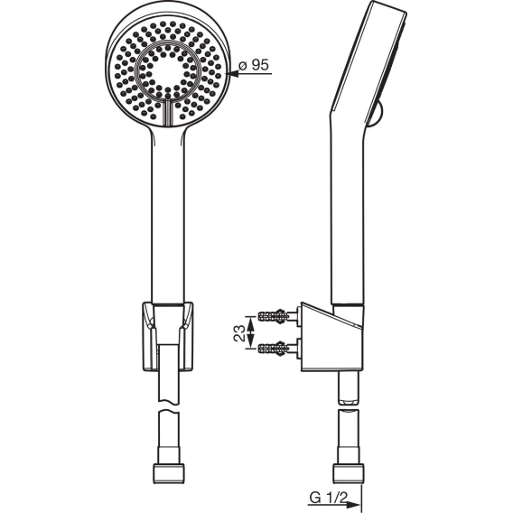 Крепление, Душевой шланг, Душевая лейка, Держатель для душевой лейки