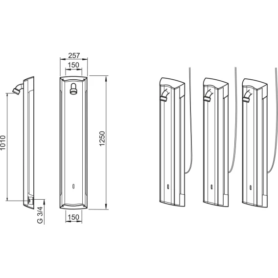 Питание от сети 12 В. через отдельный трансформатор Oras № 199275 ( макс. 4 панели на один трансформатор). Подача воды начинается при поднесении ладони на расстояние открывания/закрывания. Подача воды продолжается до тех пор, пока пользователь стоит под душем. Когда пользователь выходит за пределы расстояния опознавания, подача воды автоматически прекращается. Панель оснащена грязевыми фильтрами, обратными клапанами, ограничителем расхода воды и кабелем 10 м. для трансформатора. Настройки можно изменить при помощи магнитного ключа, который идёт в комплекте