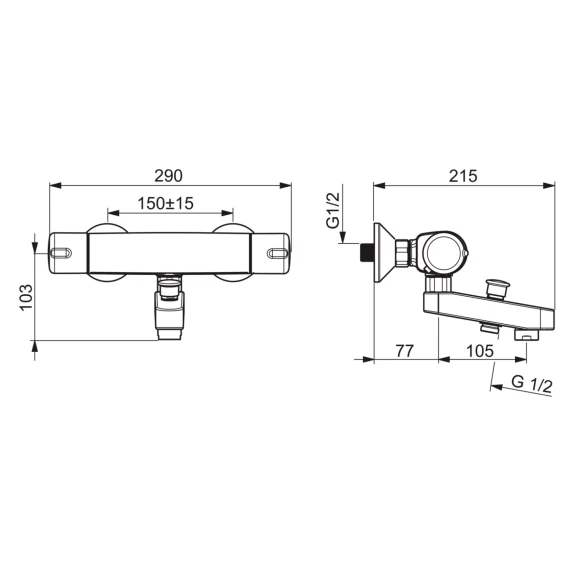 Подключение горячей воды с правой стороны.Ограничитель температуры воды на 38°C на рукоятке. Контроль за расходом воды EcoFlow. В комплект входят обратные клапаны и грязевые фильтры. В комплект входит излив (221200) с дивертером