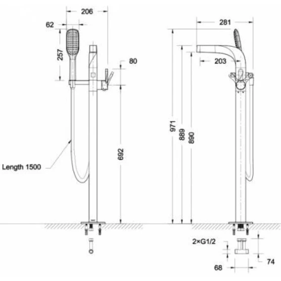 • Поток воды: Излив: 20L/min @ 0.3MPa; Душ: 8L/min @ 0.3 MPa