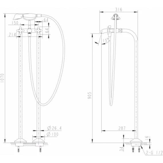 Высота излива 90.5 см