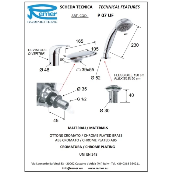 Крепление, Гибкая подводка, Душевой шланг, Душевая лейка