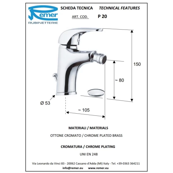 Смеситель для биде с донным клапаном Remer Project P20