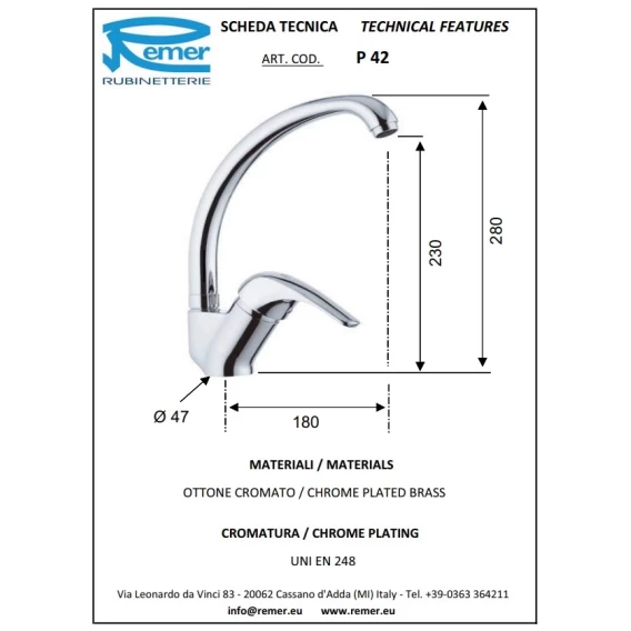 Смеситель для раковины без донного клапана Remer Kiss K11