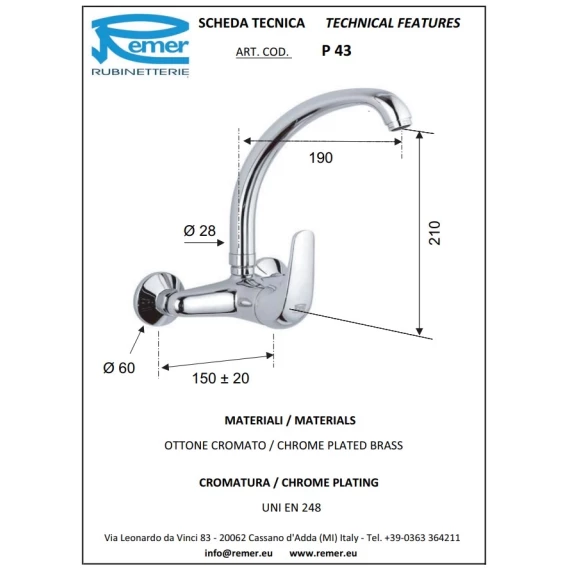 Смеситель для кухни Remer Project P43