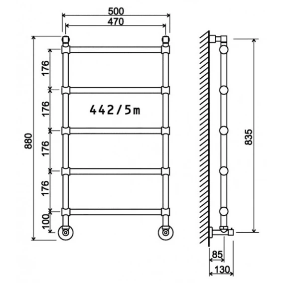 Полотенцесушитель водяной Margaroli Sole 442/470-5 бронза