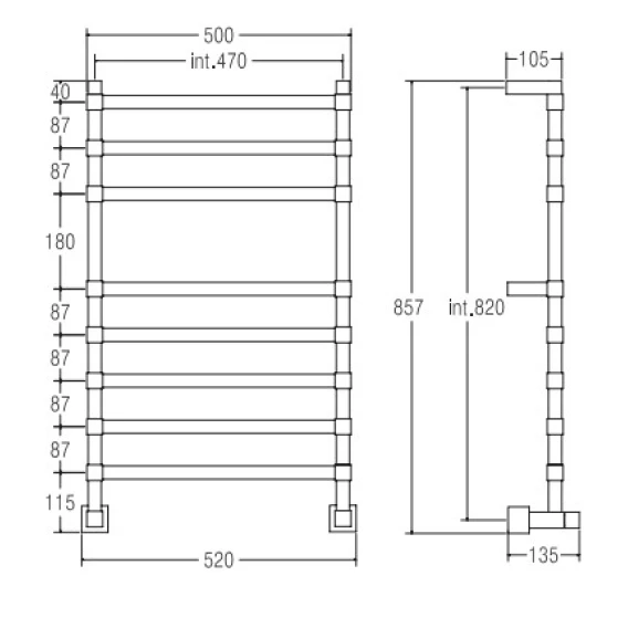 • Модульный стационарный полотенцесушитель из трубы квадратного сечения