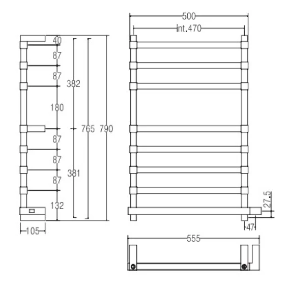 • Модульный полотенцесушитель из трубы квадратного сечения