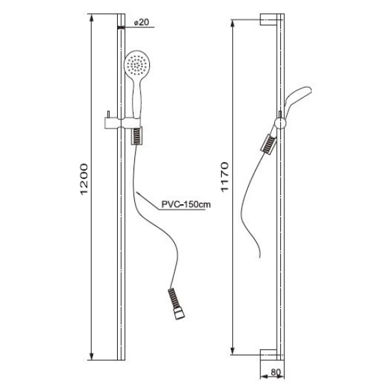 Душевой шланг, Душевая лейка, Держатель для душевой лейки, Штанга душевая