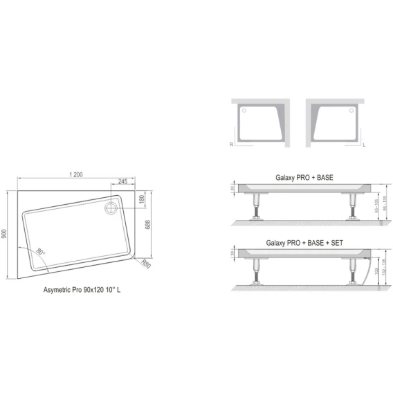 Панель для поддона 120x90 Ravak Asymetric Pro 10° SET L XA95G70101L