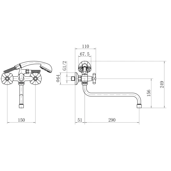 Аэратор, Металлическая розетка, Эксцентрики, Душевой шланг, Душевая лейка, Держатель для душевой лейки
