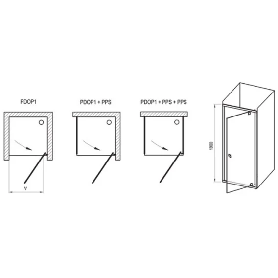 • Комбинация с двумя неподвижными стенками типа PPS позволяет создать „П“-образный душевой уголок.