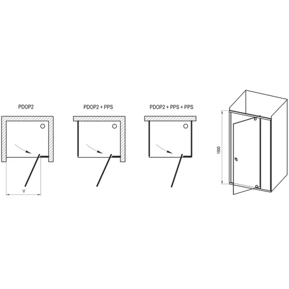 • Комбинация с двумя неподвижными стенками типа PPS позволяет создать „П“-образный душевой уголок.