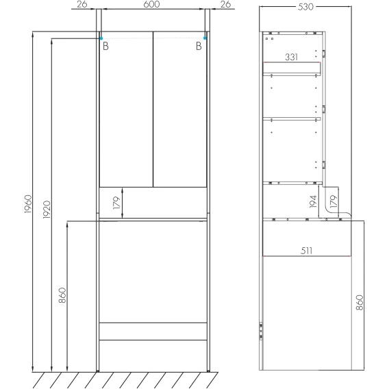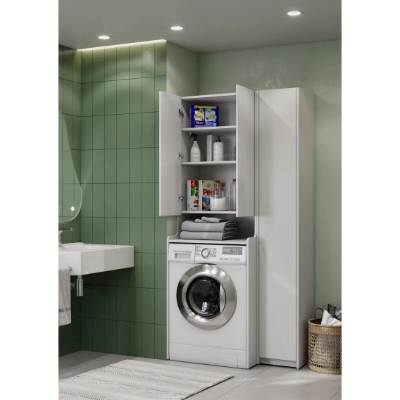 Пенал Акватон Лондри 1A260503LH010 напольный, над стиральной машиной, белый глянец