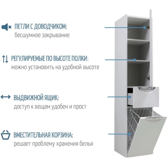 Механизм доводчика, Ящик, Полочка, Ручки, Бельевая корзина