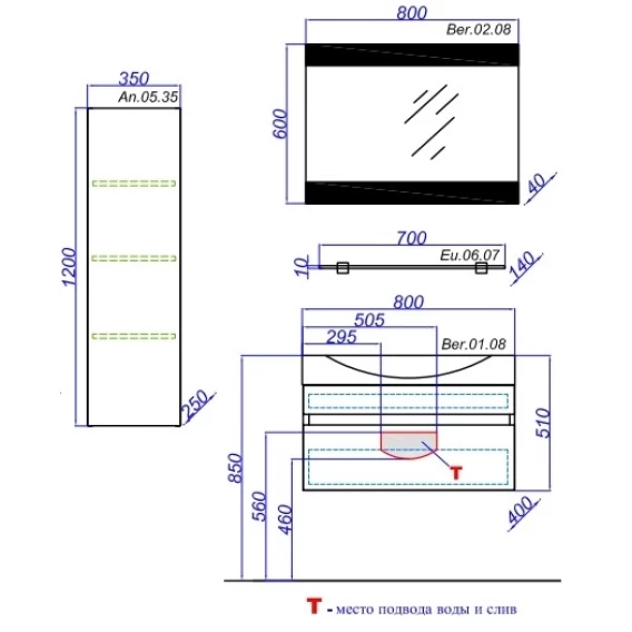 Пенал Aqwella 5 Stars Анкона An.05.35/W подвесной L/R, белый глянец