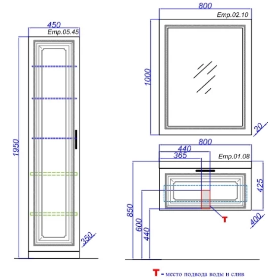 Пенал Aqwella 5 Stars Empire Emp.05.45/W напольный L/R, белый глянец