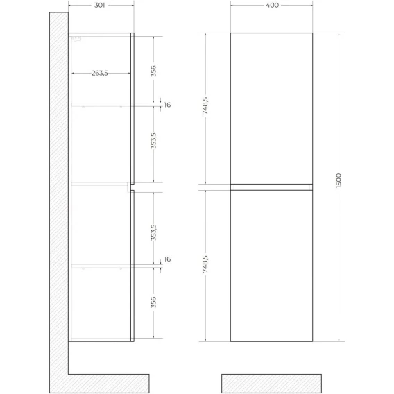Пенал Art&Max Elegant AM-ELEGANT-1500-2А-SO-GCM-LED подвесной L/R, светло-серый матовый