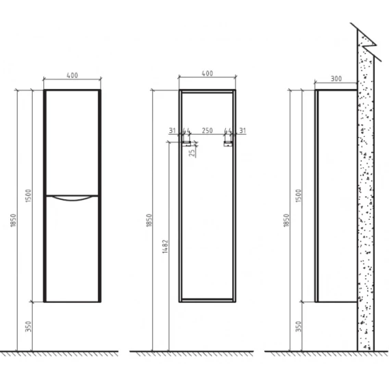 Пенал BelBagno Ancona-N ANCONA-N-1500-2A-SC-BF-L подвесной L, подвесной L, белый ясень