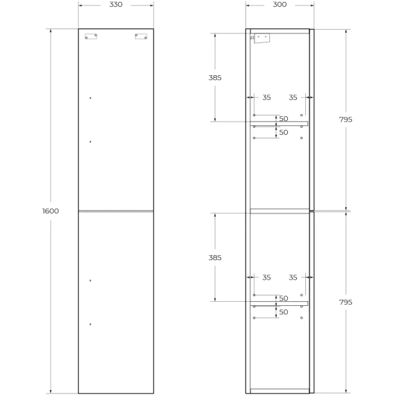 Пенал BelBagno Aurora AURORA-1600-2A-SC-BL-P-L подвесной L, Bianco Lucido