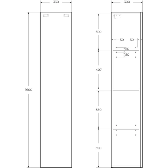 Пенал BelBagno Kraft KRAFT-1600-1A-SC-AO подвесной L/R, голубой матовый
