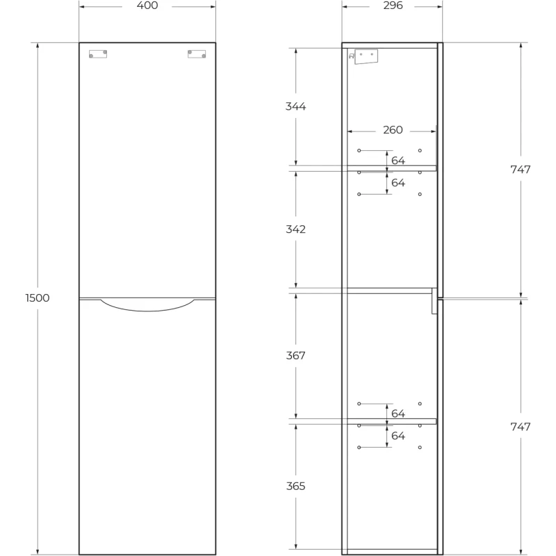 Пенал BelBagno Marino Rovere Rustico FLY-MARINO-1500-2A-SC-RR-P-R подвесной R, дуб Rustico