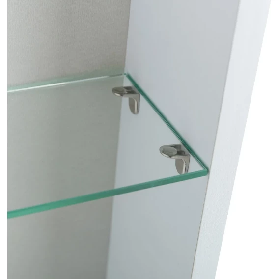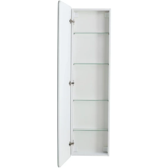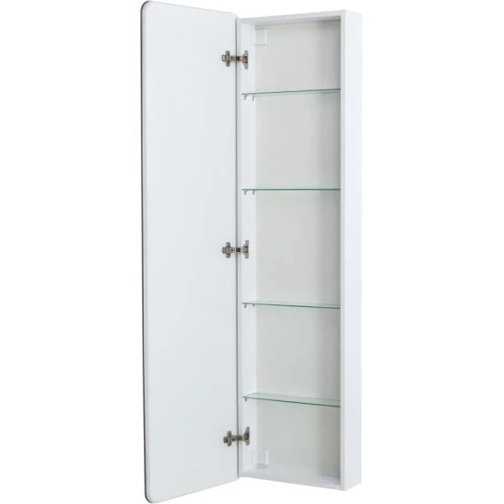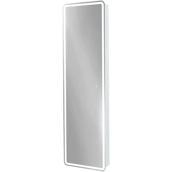 Зеркальный шкаф 45x160x150, с одной распашной дверью, реверсный, со встроенной подсветкой и сенсорным выключателем. Лента закрыта коробом из светорасеивающего пластика, питание через петлю. Четыре стеклянные полки с возможностью регулировки высоты, полкодержатели с силиконовыми накладками. Корпус из ЛДСП белого цвета, лента SMD 3528 IP44, 12V, 6000 К, холодный свет. Крепеж для монтажа прилагается.