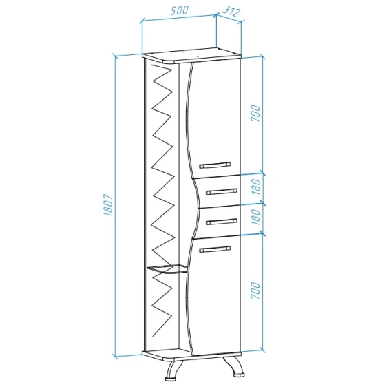 Механизм доводчика, Ящик, Полочка, Ручки, Ножки, Зеркало