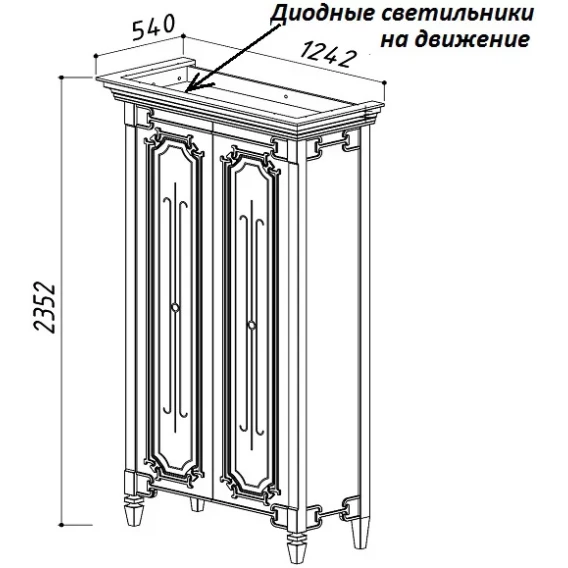 Механизм доводчика, Полочка, LED подсветка, Сенсорный выключатель, Система "Push-to-open", Ножки