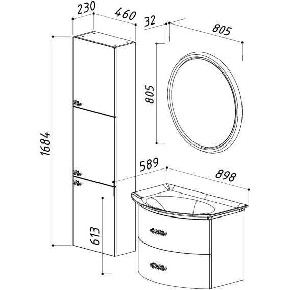 Пенал Belux Версаль ПН 50 4810924245885 подвесной R, белый глянец