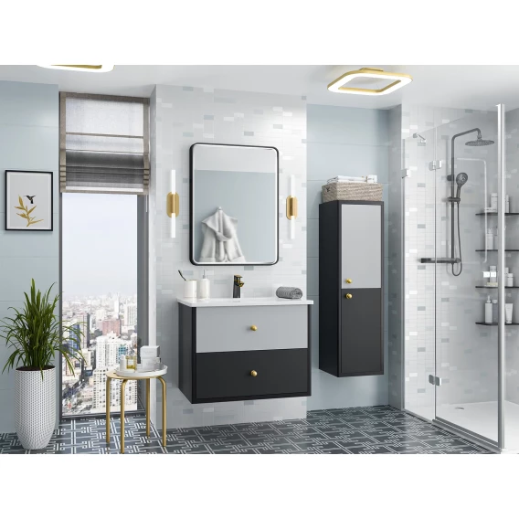Пенал Brevita 50 Shades of Grey Кристиан Кри-05035-01-01П подвесной R, черный матовый/светло-серый матовый/темно-серый матовый