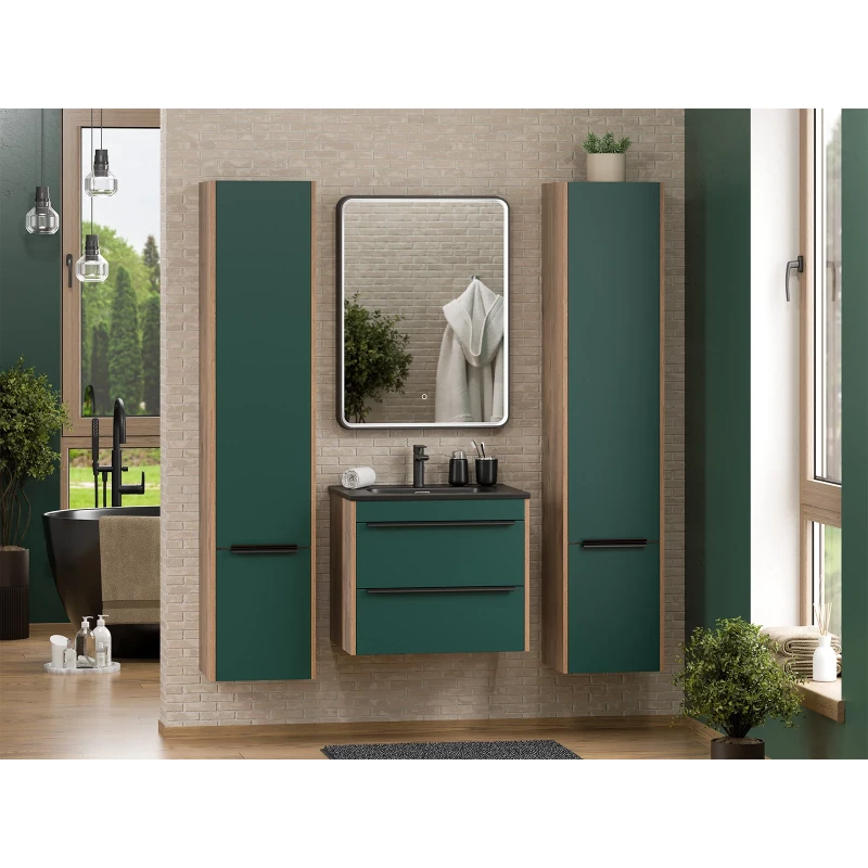 Пенал Brevita Greenwood GRE-05035-08Л подвесной L, зеленый матовый/дуб галифакс
