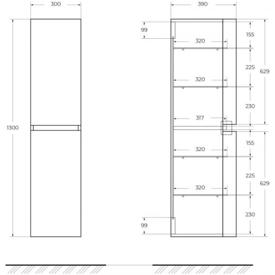Пенал Cezares Vague 54857 подвесной L/R, Grigio Lucido