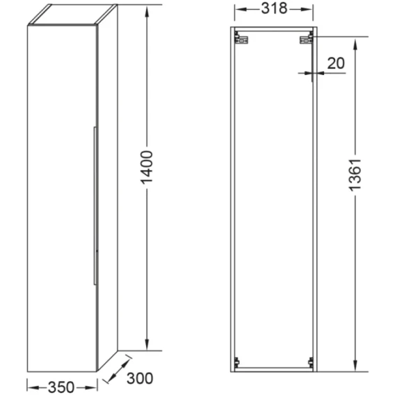 Пенал Jacob Delafon Lucien EB2059-J5-J5 подвесной L/R, белый глянец
