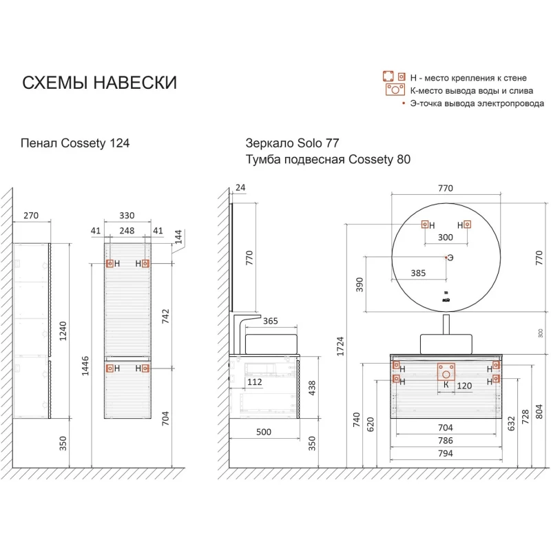 Пенал Jorno Cossety Coss.04.124/P/A/JR подвесной L/R, антрацит матовый