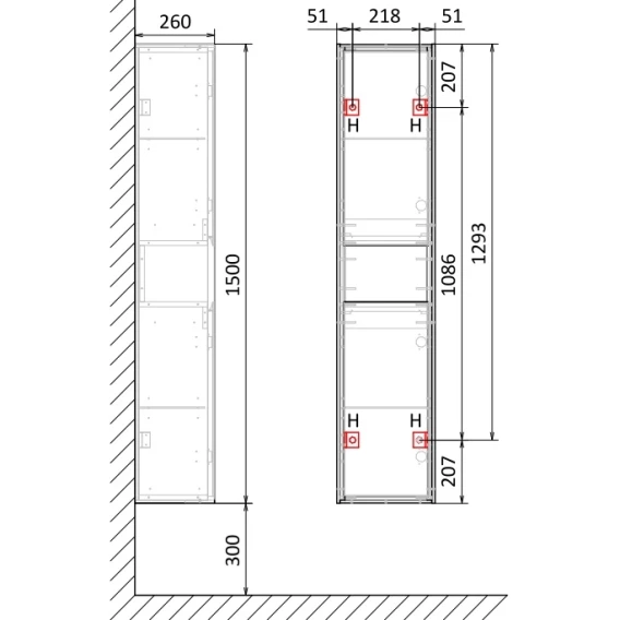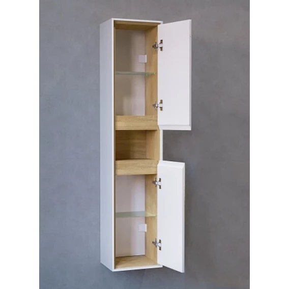 Пенал Jorno Glass Gla.04.150/P/W подвесной R, белый/дуб