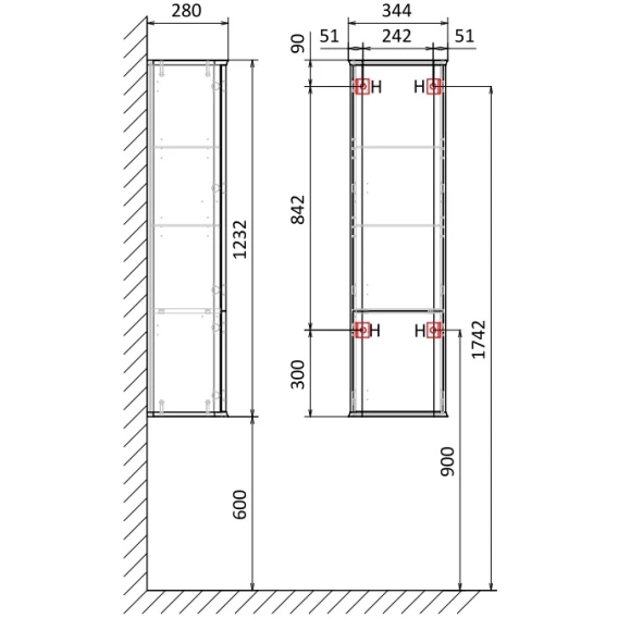 Пенал Jorno Pastel Pas.04.125/P/BL подвесной L/R, бирюзовый бриз