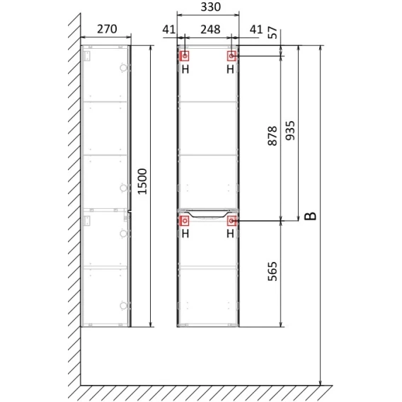 Пенал Jorno Slide Sli.04.150/P/W подвесной R, белый