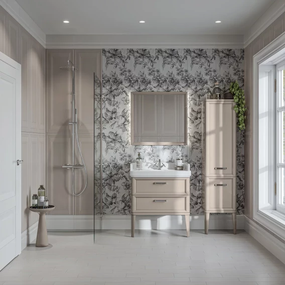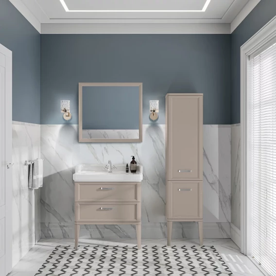 Высокий пенал, предложенный в серии POMPEI, может быть установлен в ванной либо как подвесной, либо как напольный (ножки прилагаются в комплекте)