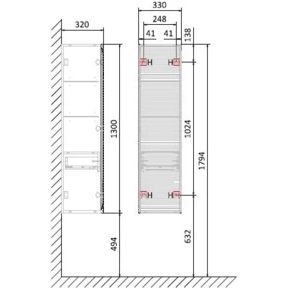Пенал Laparet Bianca BiaL.04.135/P/W подвесной R, белый глянец
