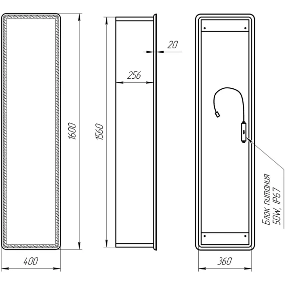 Механизм доводчика, Полочка, LED подсветка, Сенсорный выключатель, Зеркало