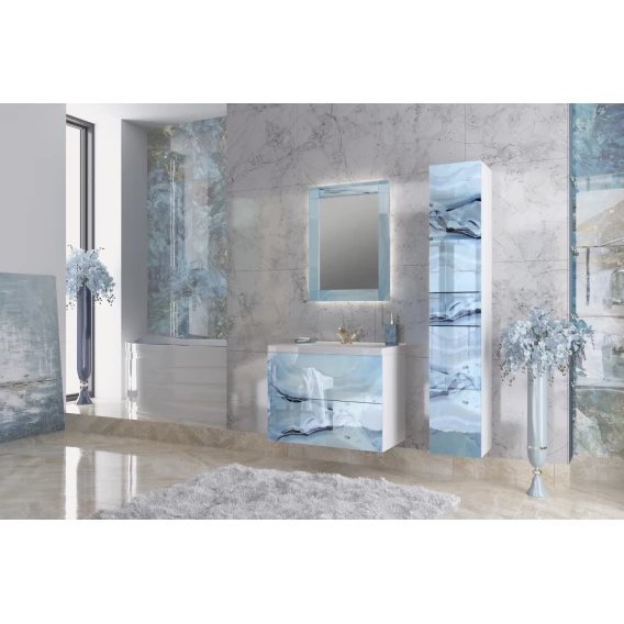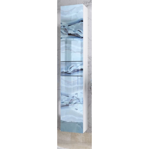 Пенал Marka One Lacio У73229 подвесной L, голубой мрамор/белый глянец