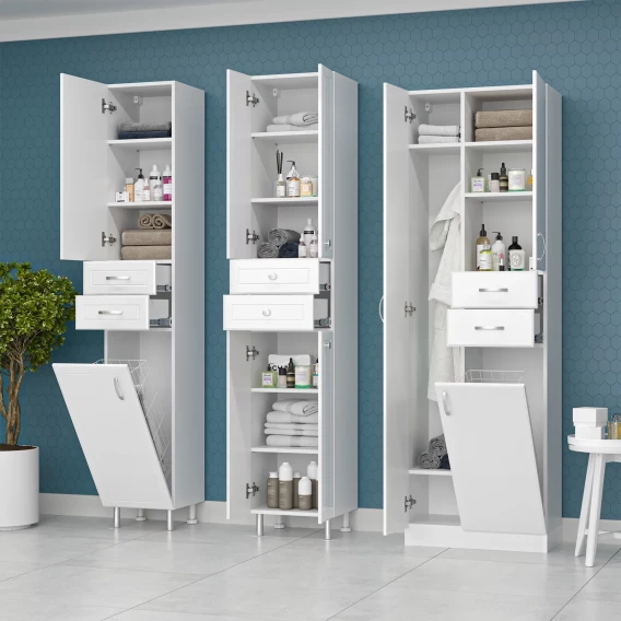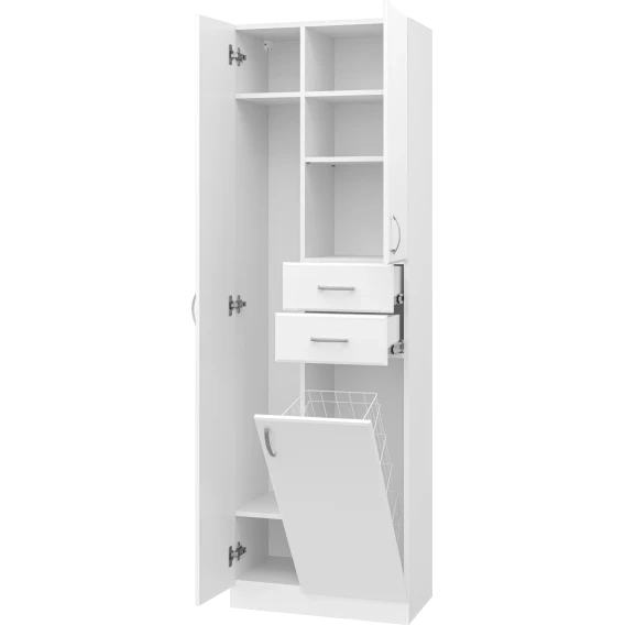 Пенал Misty Мисти Э-05060-01Бк напольный, с бельевой корзиной, белый глянец