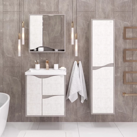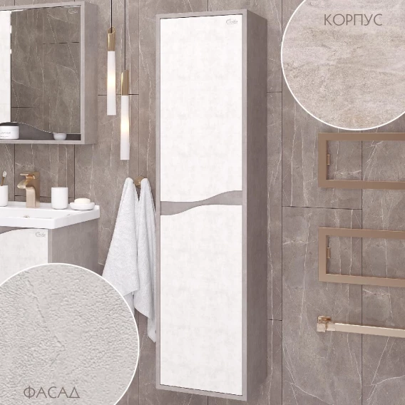 Подвесной шкаф пенал для ванной комнаты пенал Onika БРЕНДОН 35 поможет создать особенную атмосферу ванной комнаты: текстуры камня и бетона гармонично дополняют друг-друга, создавая сдержанный выразительный акцент в интерьере. Внутреннее пространство пенала поделено полками на 5 секций разной высоты, что позволяет удобно разместить все необходимые мелочи. Двери снабжены механизмом плавного закрывания. Ручки, изящно интегрированные в фасады, позволяют сделать эксплуатацию мебели более удобной и практичной. Пенал имеет универсальную ориентацию: при установке верх и низ пенала можно менять местами, а дверцы могут открываться как влево, так и вправо. Корпус пенала выполнен из ЛДСП, фасад - из МДФ в пленке, устойчивых к механическим воздействиям, перепадам температур и высокой влажности, при этом он надежно крепится к стене и не занимает место на полу, не создавая при этом сложностей в уборке помещения. Подвесы для крепления пенала - в комплекте.