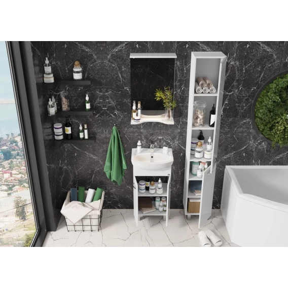 Напольный пенал для ванной комнаты Onika КОРАЛЛ 30 - это идеальное сочетание минимализма, функциональности и цены. Белый глянцевый цвет, строгие формы без декора и дизайнерские хромированные ручки на двух распашных дверях с механизмом плавного закрывания скрывают просторное внутреннее пространство для размещения необходимых бытовых принадлежностей. Корпус пенала выполнен из ЛДСП, фасад - из МДФ в пленке, специально предназначенных для использования в условиях высокой влажности. Пенал имеет универсальную ориентацию: при установке верх и низ пенала можно менять местами, а дверцы могут открываться как влево, так и вправо. В комплекте - 2 тонкие хромированные ручки и 4 ножки: 2 хромированные и 2 пластиковые.