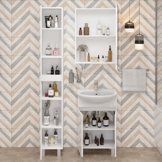 Напольный пенал для ванной комнаты Onika Милтон 30 - это идеальное сочетание минимализма, функциональности и цены. Шкаф-пенал имеет белый глянцевый цвет, строгие формы без декора, интегрированные ручки на двух распашных дверях, а внутри - просторное внутреннее пространство для размещения необходимых бытовых принадлежностей. Корпус пенала выполнен из ЛДСП, фасад - из МДФ в пленке, специально предназначенных для использования в условиях высокой влажности. Пенал имеет универсальную ориентацию: при установке верх и низ пенала можно менять местами, а дверцы могут открываться как влево, так и вправо. В комплекте - 4 ножки: 2 хромированные и 2 пластиковые.