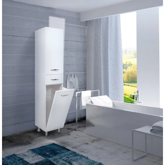 Напольный пенал для ванной комнаты с корзиной для белья Onika МОДЕРН 32, благодаря простому минималистичному дизайну, белому глянцевому фасаду, подойдет под любой интерьер ванной комнаты. Большое отделение сверху за распашной дверцей с механизмом плавного закрывания, небольшой ящик с направляющими полного выдвижения посередине и отделение с корзиной для белья внизу шкафа обеспечит бережное хранение всех необходимых в ванной комнате вещей. Размер бельевой корзины: 250*265*640. Корпус пенала выполнен из ЛДСП, фасад - из МДФ в пленке, устойчивых к механическим воздействиям, перепадам температур и высокой влажности. В комплекте - 3 хромированные ручки и 4 ножки: 2 декоративные и 2 пластиковые.