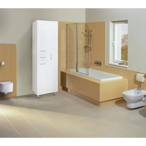 Напольный пенал для ванной комнаты Onika МОДЕРН 52, благодаря простому минималистичному дизайну и белому глянцевому фасаду, подойдет под любой интерьер ванной комнаты. Конструкция пенала предусмотрела огромное пространство для хранения, в котором поместятся все необходимые вещи: 3 больших распашных отделения с механизмом плавного закрывания и выдвижной ящик с направляющими полного выдвижения. Пенал имеет универсальную ориентацию: при установке верх и низ пенала можно менять местами, а дверцы могут открываться как влево, так и вправо. Корпус пенала выполнен из ЛДСП, фасад - из МДФ в пленке, устойчивых к механическим воздействиям, перепадам температур и высокой влажности. В комплекте - 4 хромированные ручки и ножки: 2 декоративные и 2 пластиковые.